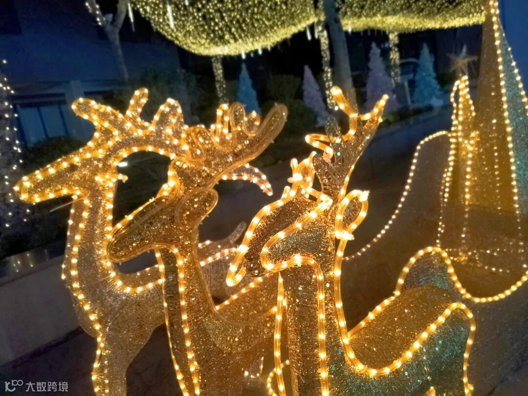 闪闪发光的驯鹿,装满礼物的驯鹿车