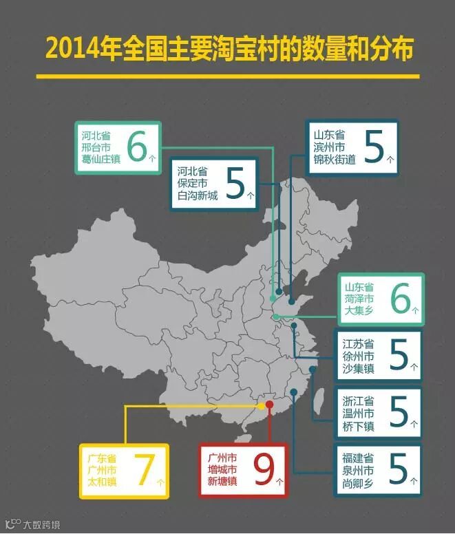 2014年,全国共发现212个淘宝村,分布在福建、广东、浙江等10个省市。根据农村网商的家庭经营特点,按每个网店约4个从业者计算,预计淘宝村整体带来直接就业达28万人以上。