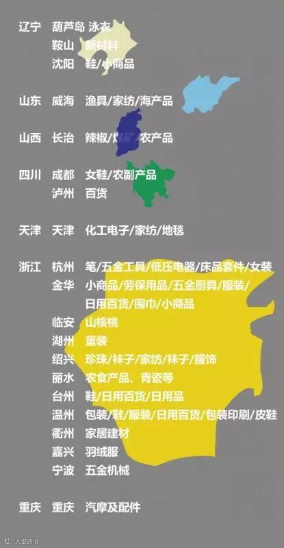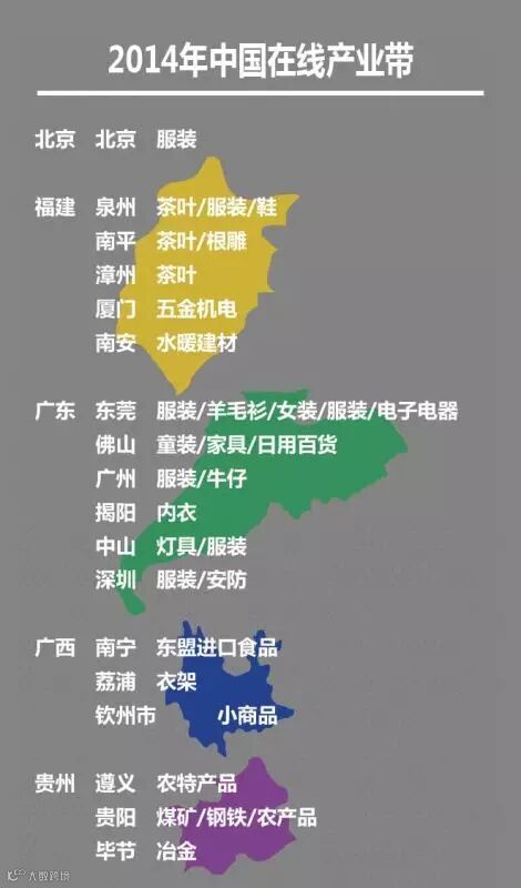 由点及面,除了淘宝村,阿里大数据还给我们绘出了有趣的在线产业带。