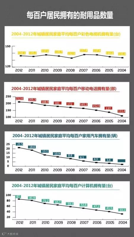 说到耐用消费品,大家肯定想到了“三大件”。70年代,手表、自行车、缝纫机。80年代,冰箱、彩电、洗衣机。90年代,空调、电脑、录像机。现在,则是手机、电脑、汽车。All in All,耐用消费品,就是……很耐用的消费品(Σ( ° △ °|||)︴)。