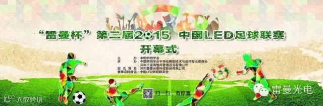 “第二届雷曼杯•中国LED足球联赛”将于2015年5月17号在深圳正式开赛。“第二届雷曼杯•中国LED足球联赛”由中国照明学会主办,中国照明学会半专委、中国LED照明产业网、深圳市蓝海智库管理咨询有限公司承办,深圳雷曼光电科技股份有限公司冠名赞助。据悉,中国照明学会秘书长窦林平及各参赛企业领导将会出席当天开幕式。