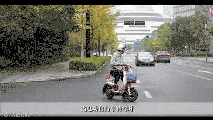 当电动自行车横过道路或转弯时,走人行横道,下车推行,边走边看,观察路况,慢慢通过,避免公交车等大型车辆遮挡视线,贸然快速通过容易引发交通事故。