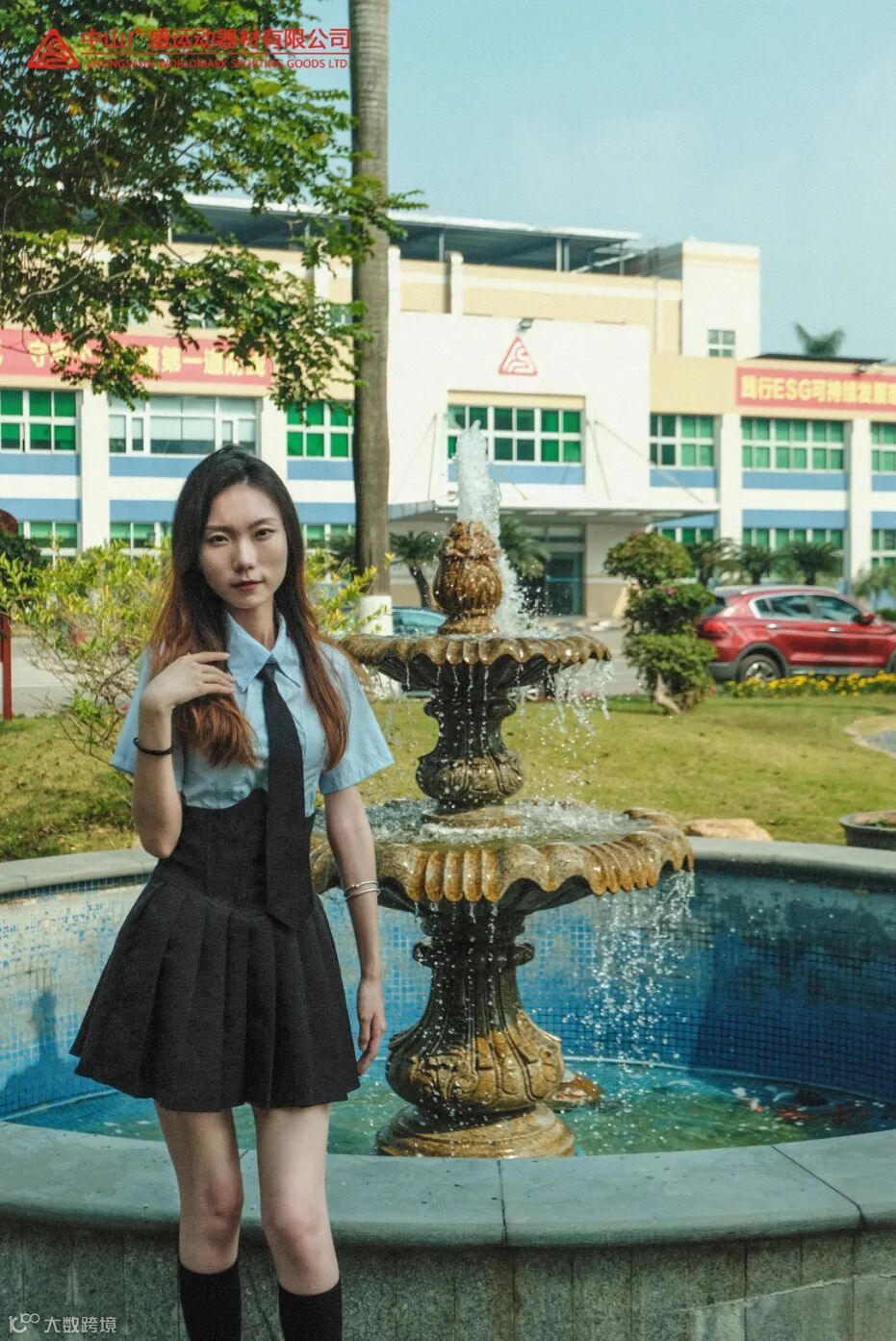 蓝天、绿草、喷水池...相映成趣