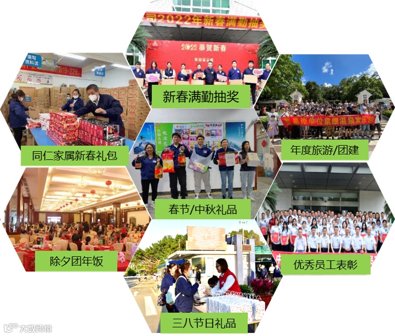 满勤抽奖、节日福利、部门团建、快乐家庭日、暑期大礼包、暑期亲子班、感恩大礼包等,不仅让同仁参与进来,还让同仁家属加入到广盛大家庭,进一步增强团队凝聚力和影响力,让同仁更有活力投入到工作中,享受生活,享受快乐。