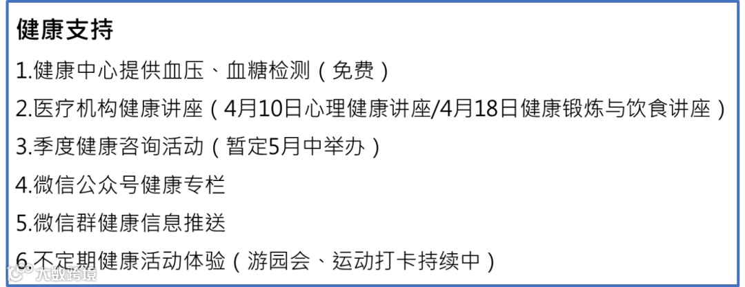 2023年的广盛健康监测数据显示,很多同仁的血压检测、身高体重、血糖检测数据显示异常,为此,管理部也提供多项健康支持: