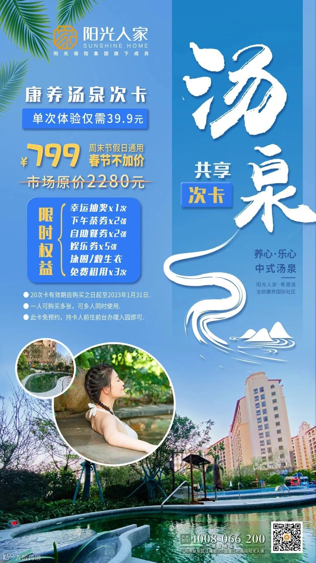 这一天,阳光人家正式推出首批汤泉共享次卡,回馈给各位家人们,让大家可以享受养心、舒心、乐心的暖暖汤泉,拥抱一整个暖冬。