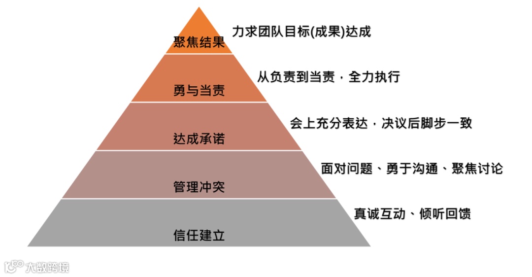 在我们广盛笔记本前页:对手偷不走的优势中,有个「建立团结的领导团队」金字塔,可以很好的一一对应说明,如何克服团队缺乏信任、害怕冲突、欠缺投入、逃避责任、无视结果这五大障碍。