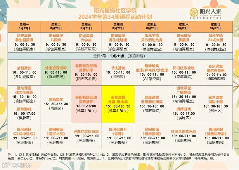 丰富社区长者的文化生活,促进长者们的沟通交流,愿晚年生活让阳光爸妈感受到儿时一样的温暖。