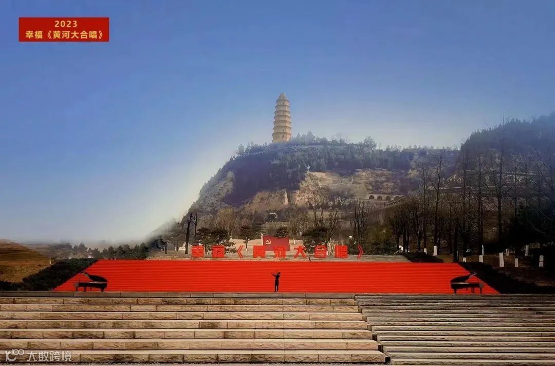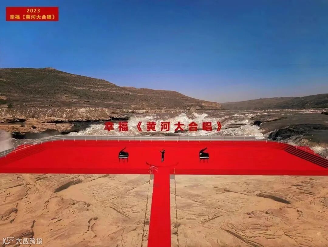 耗资近百万在宝塔山下,黄河壶口瀑布搭建两座超级专业大舞台。