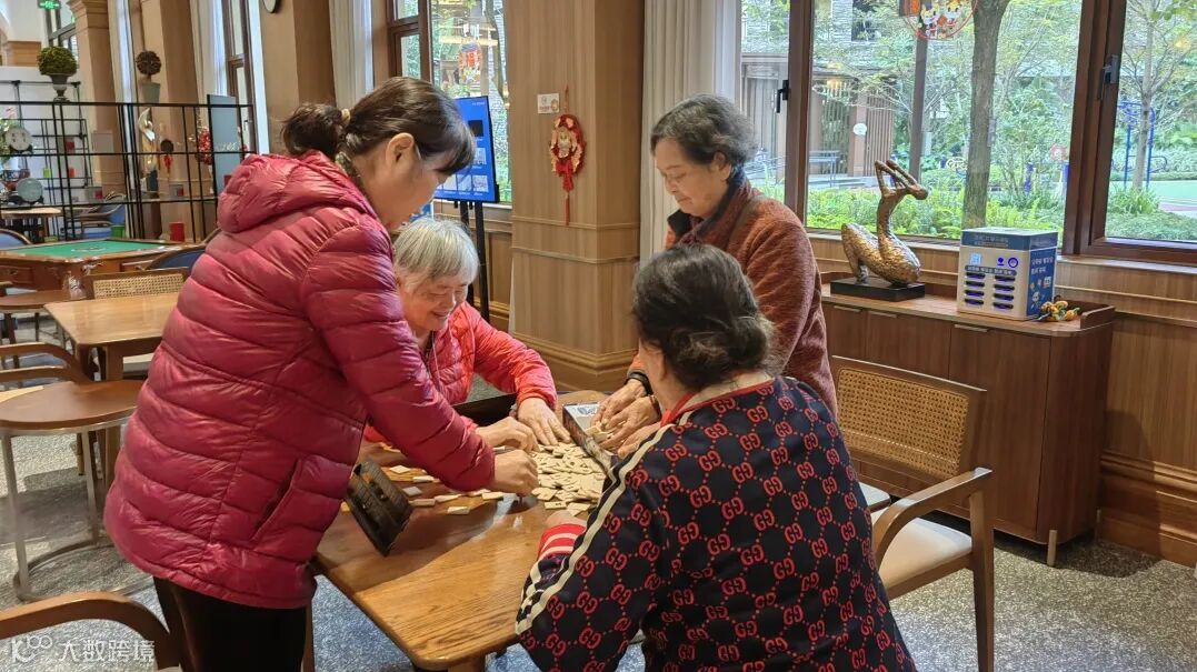 长者们自己结伴玩各种棋牌活动,社交活动对老年人的身心健康都有很大的益处