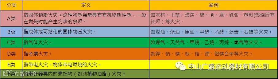 根据可燃物的类型和燃烧特性,火灾分为以下六大类: