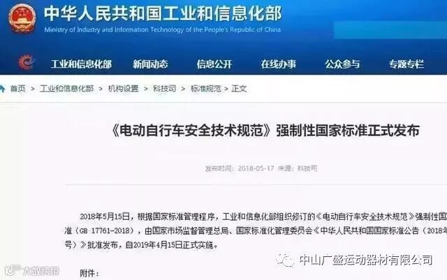 国家市场监督管理总局、国家标准化管理委员会批准发布的、新修订的《电动自行车安全技术规范》出台,将于2019年4月15日起实施。