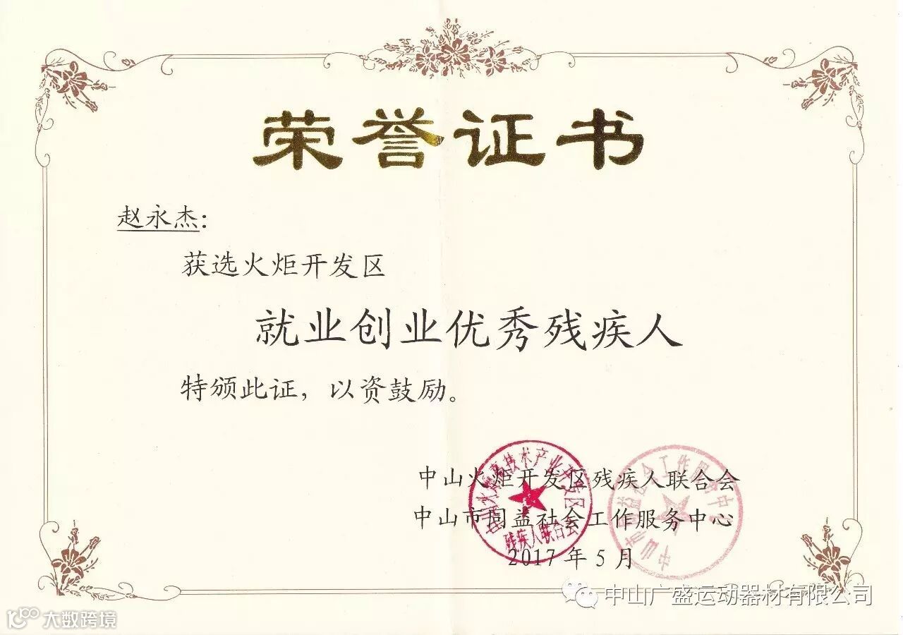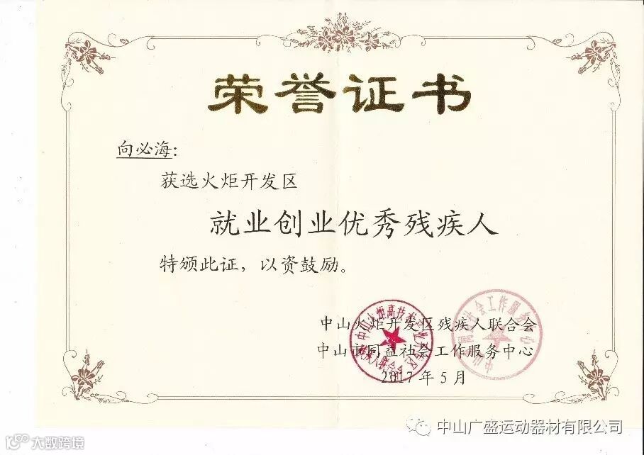 在2017.5.17(星期三),在火炬区残联联合同益社工开展的“日行益善•汇爱火炬”年度公益表彰大会上,公司很荣幸被评上了”助残爱残“爱心企业。