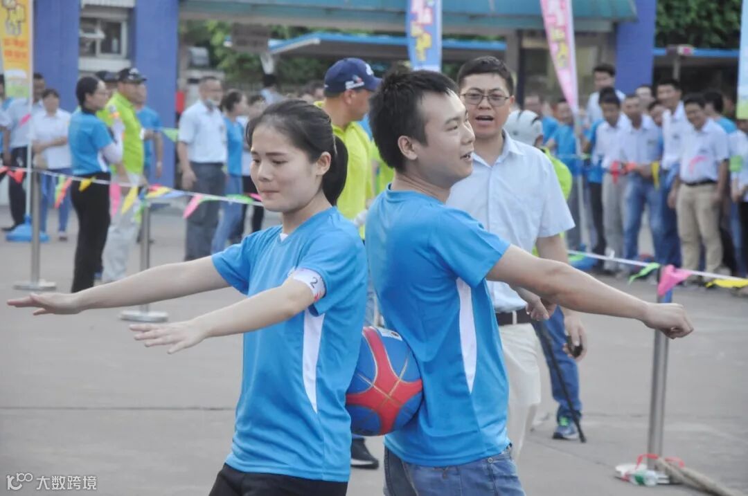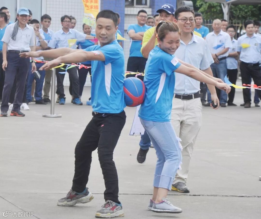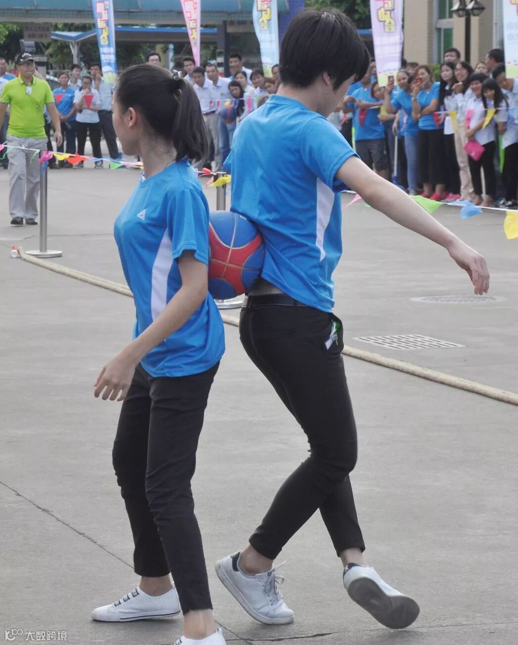 龙凤戏珠,参赛人数为16人(8男8女),参赛队员(2人一组,1男1女)采用接力方式背靠背夹篮球接力。用时少者获胜。