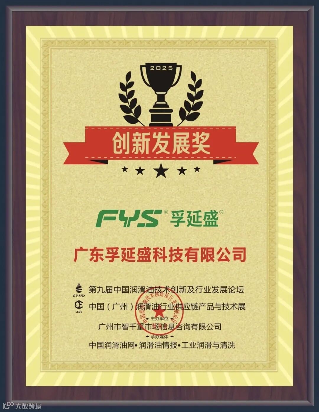 本届活动共授予20余家优势企业多项实力大奖,以表彰其在技术研发、产品创新及行业推动方面的突出贡献。广东孚延盛科技有限公司凭借在润滑技术领域的持续创新能力和市场影响力,荣获大会颁发的“创新发展奖”,彰显了企业在润滑油高端产业链中的硬核实力与技术话语权。