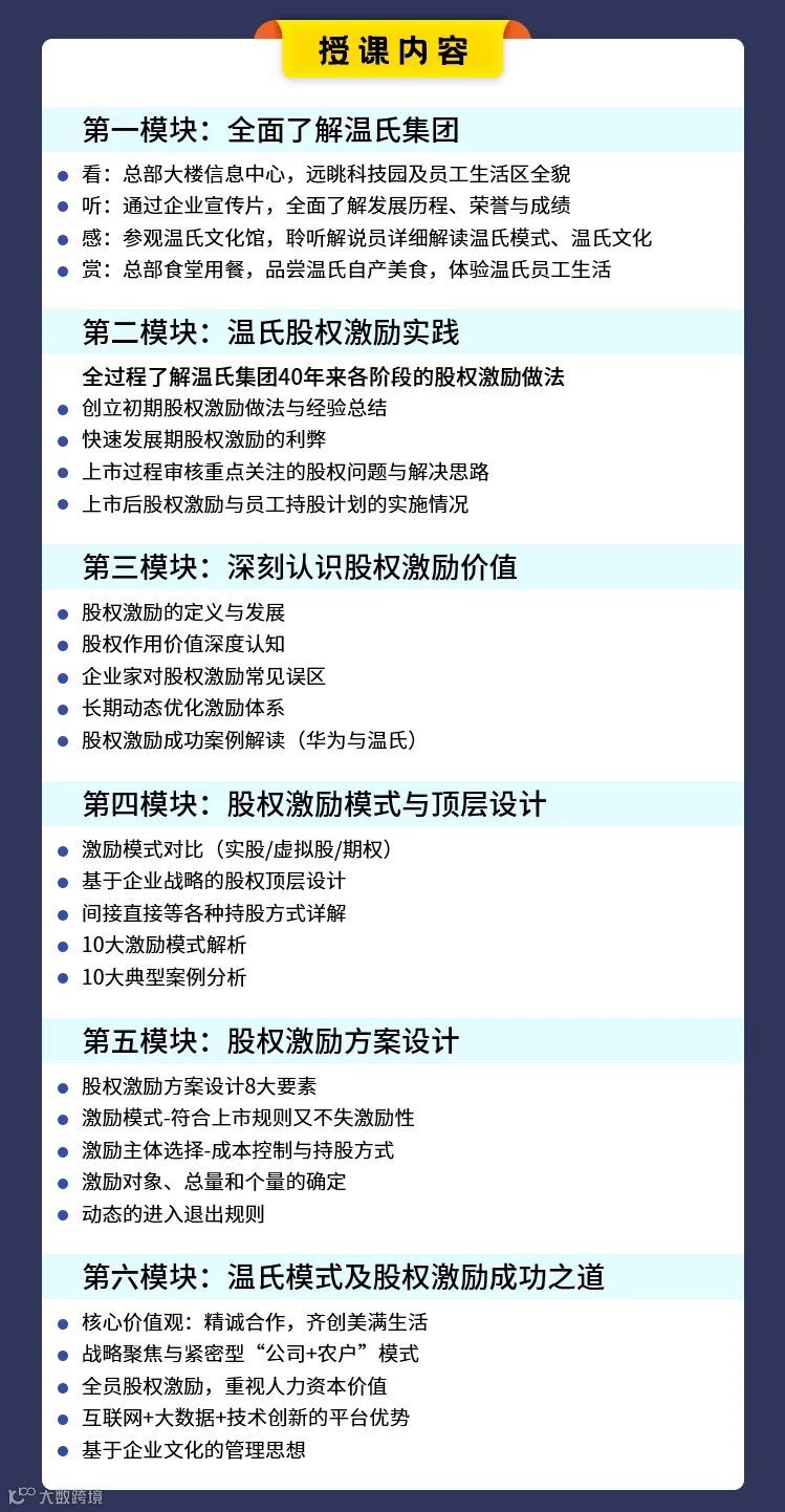 为此,专注股权激励服务近20年的华扬资本特组织企业家前往温氏集团总部,通过深度访学加专家讲授的方式,帮助学员深入探寻合伙人制度成功的奥秘。