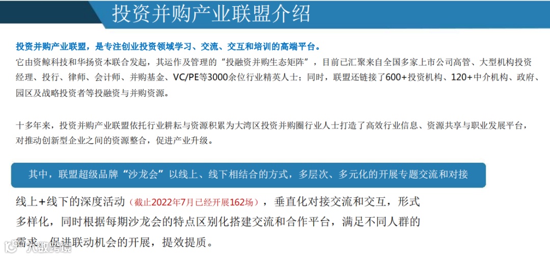 (以投资并购项目对接为主,投融资项目对接为辅开展系列线下活动)