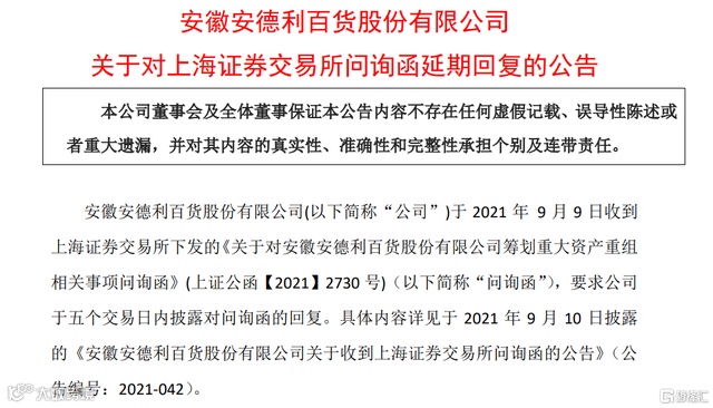 内幕交易:安德利在9月9日晚提交了《关于筹划重大资产重组的提示性公告》,在此之前,从8月25日开始股价已出现连续上涨,至9月9日收盘累计涨幅已达到34.12%。9月9日公告《关于筹划重大资产重组的提示性公告》而非重组预案很有可能也是考虑到股价的涨幅被逼出来的提示性公告,看起来重组的消息很有可能已经提前走漏。交易所在后一封追加的问询函中问到的筹划过程、重要时间节点其实就是指向可能的内幕交易。我们在《从国联、国金证券终止重组看并购方案设计中防控内幕交易的考量》提到过,由于内幕交易是证券监管的高压线,对普通人的诱惑又大,防控内幕交易的难度应纳入交易方案设计的考量因素而非简单要求各方注意保密了之。一旦在交易公告前股价出现连续上涨,各方很可能要面临继续推进交易有人可能要因内幕交易受到刑责或者终止交易的困境。