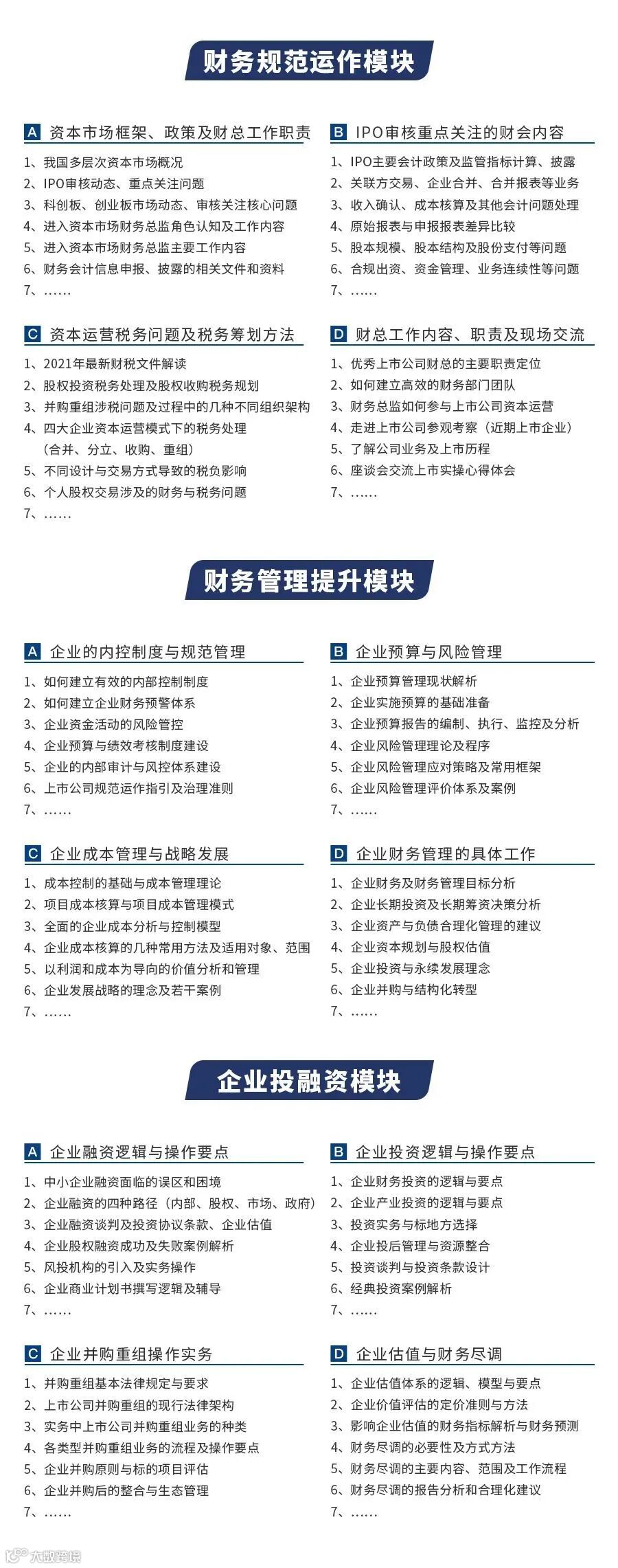 本次预告:投融资并购模块