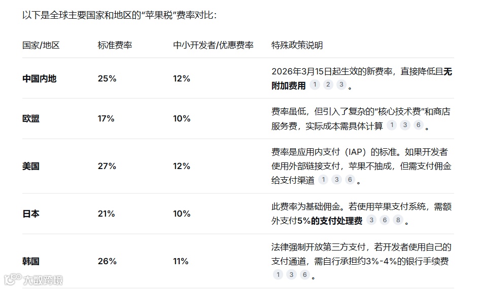 2025年底,日本开发者获得了与欧盟开发者类似的权利,标准费率则从30%降至21%,第三方应用商店支付5%的核心技术费。