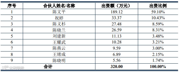 此时的众腾投资虽是持股平台,但持股平台的合伙人是由公司实际控制人陈文平和他的亲属朋友组成。具体如下;