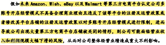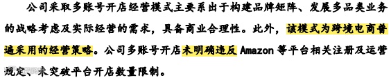 采用不同的公司注册不同的店铺,虽然可以在店铺的名称、法定代表人以及股权上隔离主体公司,但也不是完全没有风险,也不能说完全没有违反亚马逊一个卖家在同一站点只能开一个店铺的规定,因为子公司也是主体公司的下属公司,同样从发货来看,多是境内统一发货,电商平台也是可以监测,也不能把平台当傻子。赛维时代在招股书也如实披露自己可能会存在因违法这块的规定,而导致店铺被关闭的风险。