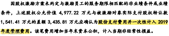2019年12月上海东方证券创新投资有限公司以32.29 元/股的价格向公司增资入股,远远高于员工入股价格10元/股,因此该差额部分需要确认股份支付。但需要关注的是,该项股份支付到底是一次性摊销还是分期摊销?招股书披露的是一次性摊销,具体如下: