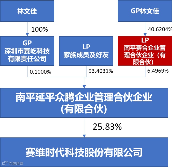 赛维时代实施股权激励,以众腾投资为持股平台,激励对象通过持有众腾投资LP南平赛合企业管理合伙企业(有限合伙)的财产份额来间接持有赛维时代的股份。具体架构如下: