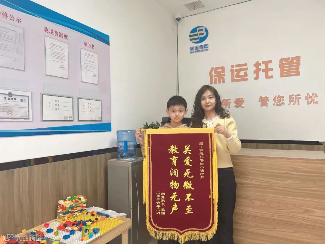 没有惊天动地的壮举,只有日复一日的“把小事做细,把细节做透”。从作业辅导到一日三餐,从习惯养成到身心呵护,田小瑞用“爱心、耐心、责任心”三味真火,点燃了保运托管的服务温度。这面锦旗,是认可,更是承诺——保运托管将继续以真心为舵,以温情为帆,做那个让家长放心托付、让孩子安心成长的温暖港湾。