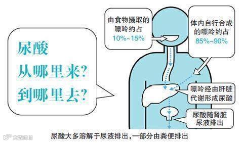 随着新陈代谢过程中那些老的旧的嘌呤在肝脏中会被不断地分解,最终形成尿酸。也就是说尿酸的形成是一个终身过程。而恰恰我们身体能够每天通过肾脏和肠道排出去的尿酸含量也差不多是这个数额。所以说,此时尿酸在人体产生了一个微妙的平衡状态。