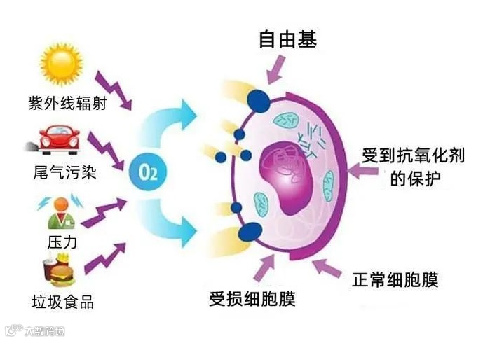 氧自由基对于人体来说百害无一利,氧自由基会攻击人体的DNA、蛋白质和脂类等。值得一提的是,氧自由基在损伤脂类时,会造成脂类的过氧化,而脂类的过氧化又会产生氧自由基,形成恶性循环。