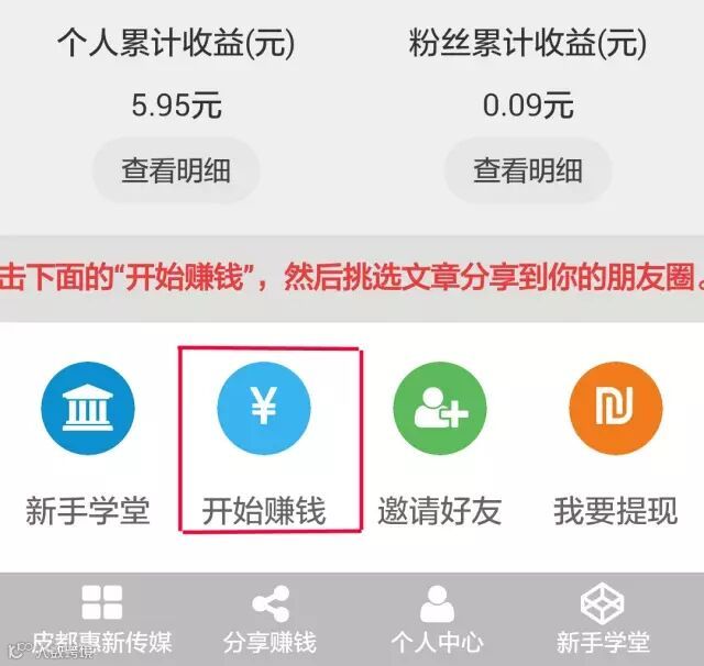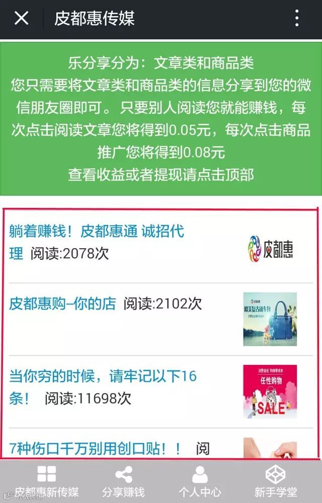 选择任何一片文章分享到你的朋友圈或你的朋友,点击后该文章后,你可获得一定收益