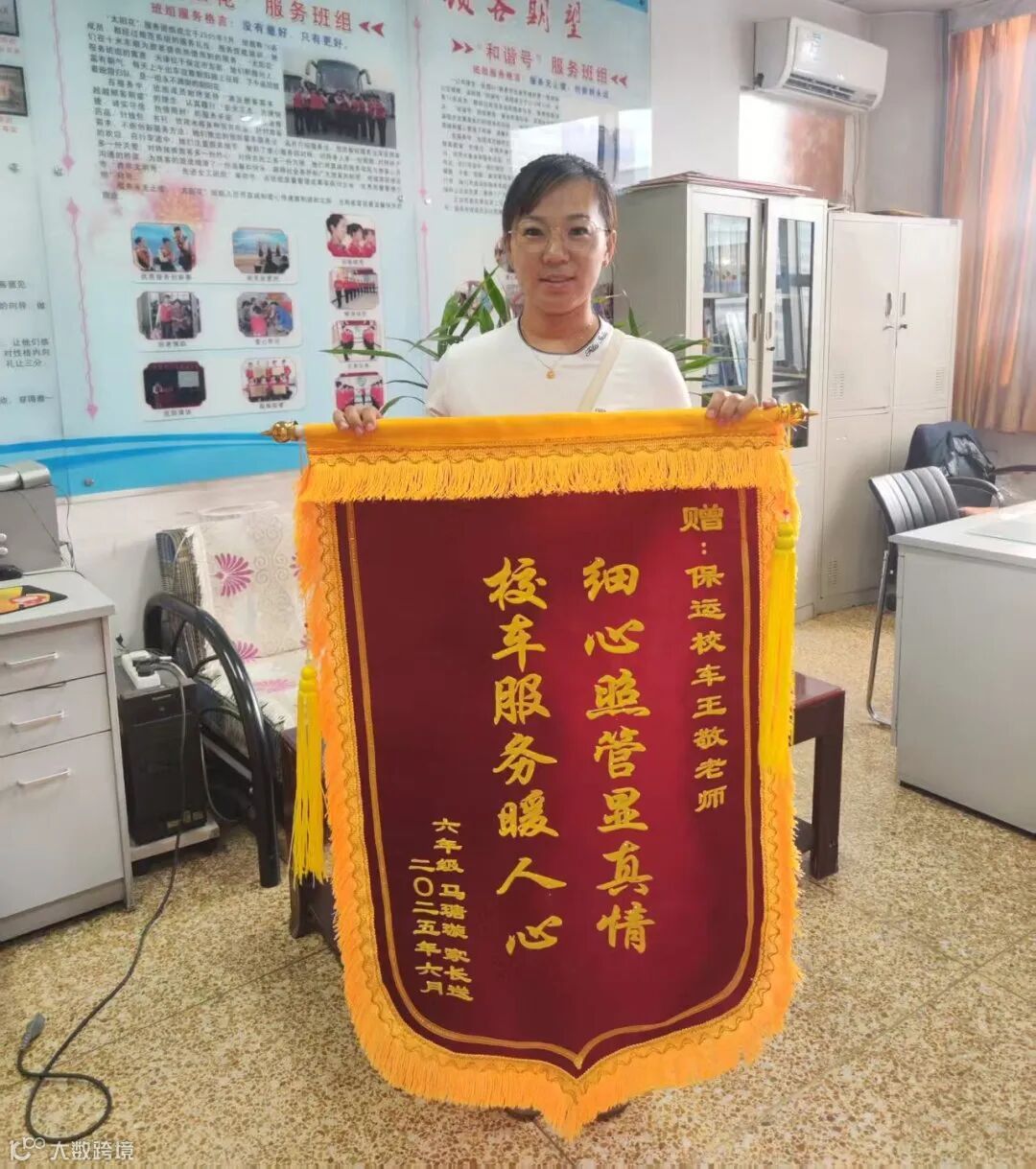 在从事校车照管员工作的几年间,王敬从未有过一次迟到。即便遭遇暴雨、大雪等恶劣天气,她也会提前规划好路线,确保准时接送孩子们上学。2025年,王敬已荣获两面锦旗。家长们纷纷表示:“王老师就像孩子们的妈妈,把孩子交给她,我们十分放心。”