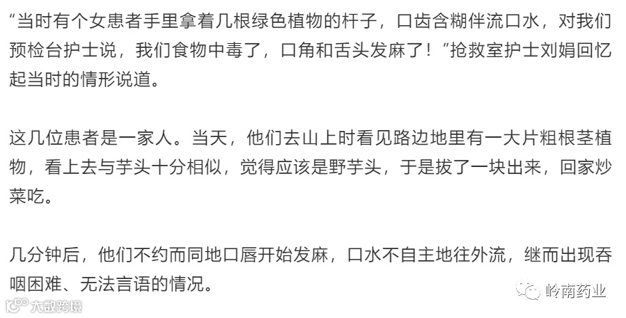 此外,绿萝和万年青也是容易被忽视的家养毒性植物。因此提醒广大市民,看到不明食物时不要轻易入口,野生植物尤其要注意。一旦发生这种吃了野生植物后,嘴巴发麻发苦,口水外流的情况时,一定要及早就诊。