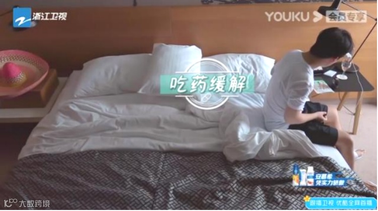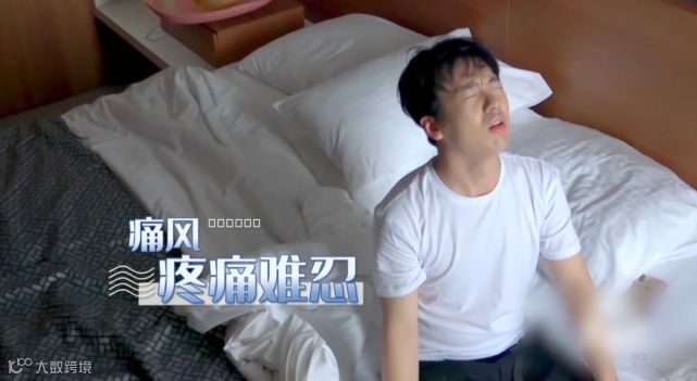 在2019播出的美食旅游节目《漫游记》中,郭麒麟的痛风发作,脚肿得厉害,疼得都睁不开眼睛。