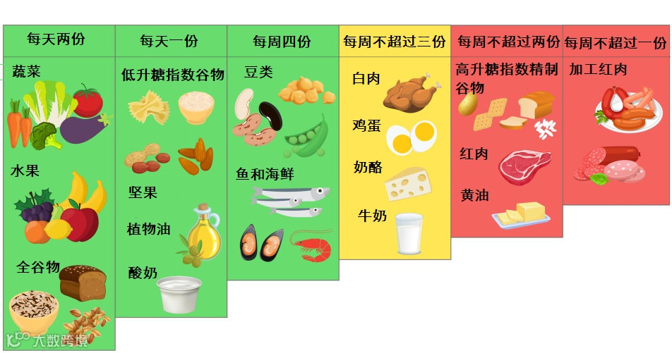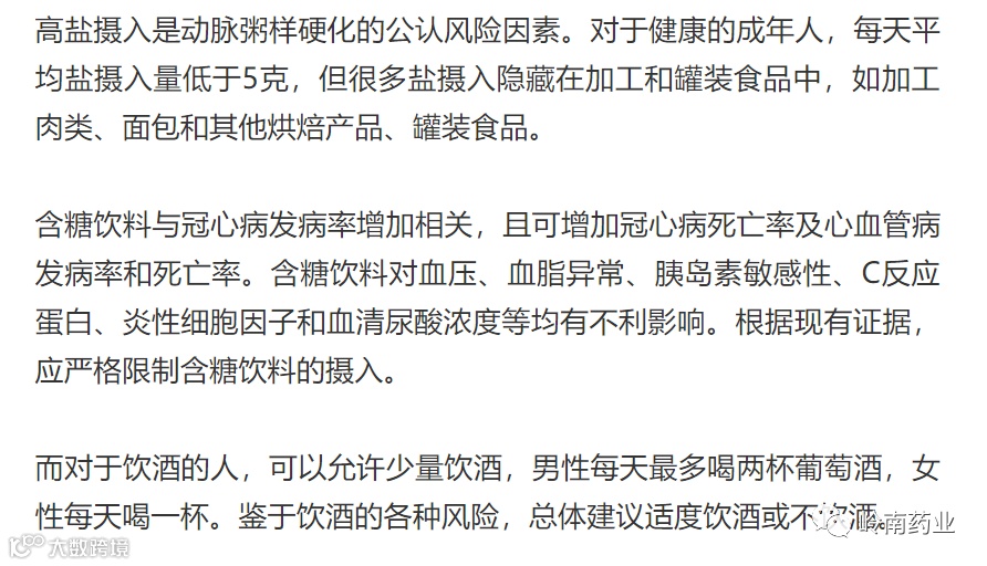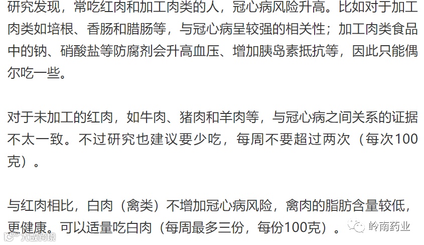常吃坚果,可降低冠心病发病和死亡风险。每日食用28 克坚果可降低28%的冠心病风险。根据剂量反应分析,建议每天食用30克坚果。多吃水果和蔬菜,与冠心病发病风险较低有关。现有证据一致支持在日常饮食中大量食用水果和蔬菜,每天至少吃400克。