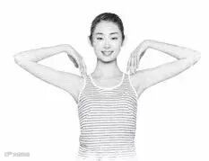 双手从侧平举(9点15分)举到10点10分处,反复练,以感到颈部肌肉酸胀为宜。