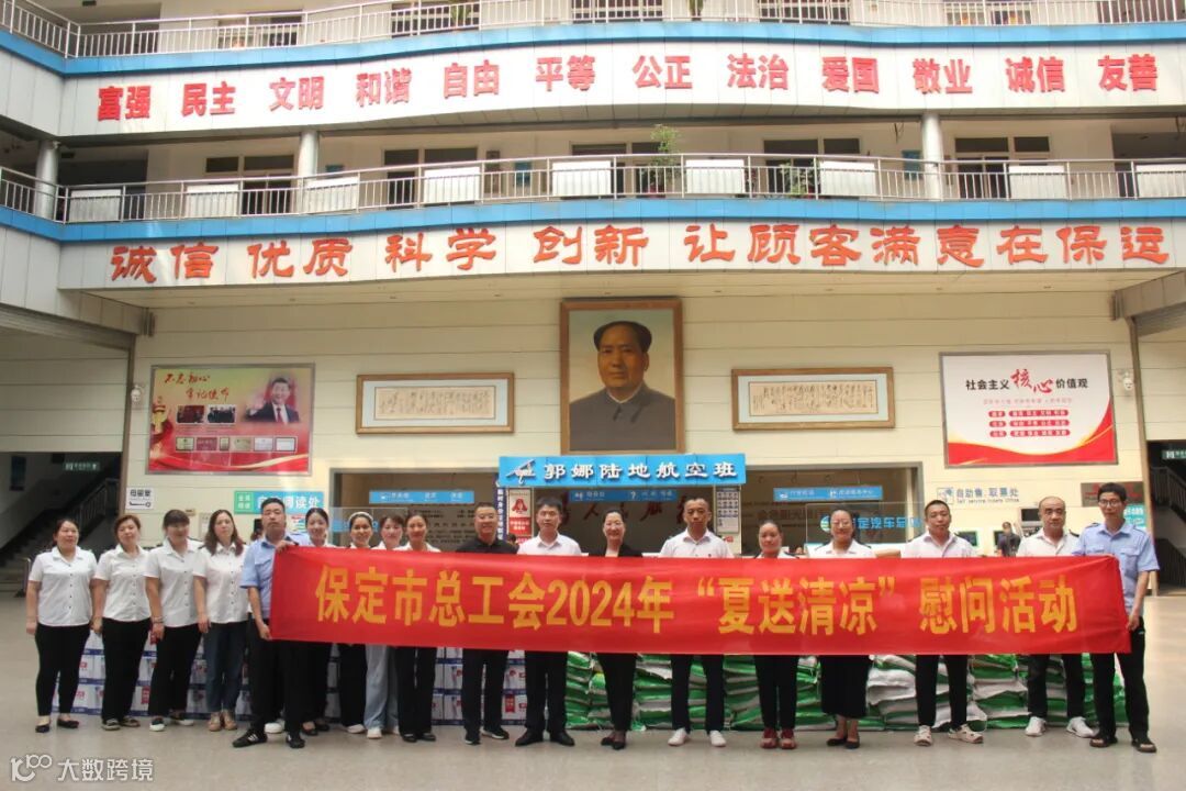 7月31日下午,市总工会党组成员、副主席叶曲相、办公室主任岳新杰一行带着毛巾、绿豆、白糖、矿泉水、香皂、洗衣粉等防暑降温物资专程来到保运集团保定客运中心站,开展“送清凉”慰问活动,为奋战在高温酷暑下的一线职工送上工会组织的关怀。集团公司副总经理、工会主席郭娜等领导陪同。
