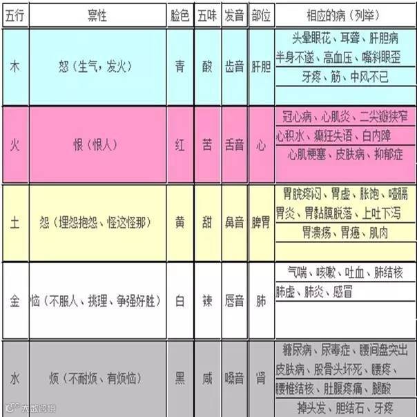 五行与五脏、五味、五行食物对照表