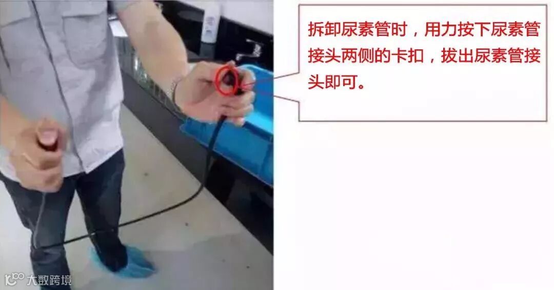 ① 将尿素管路拆下,在尿素管路中灌满热水