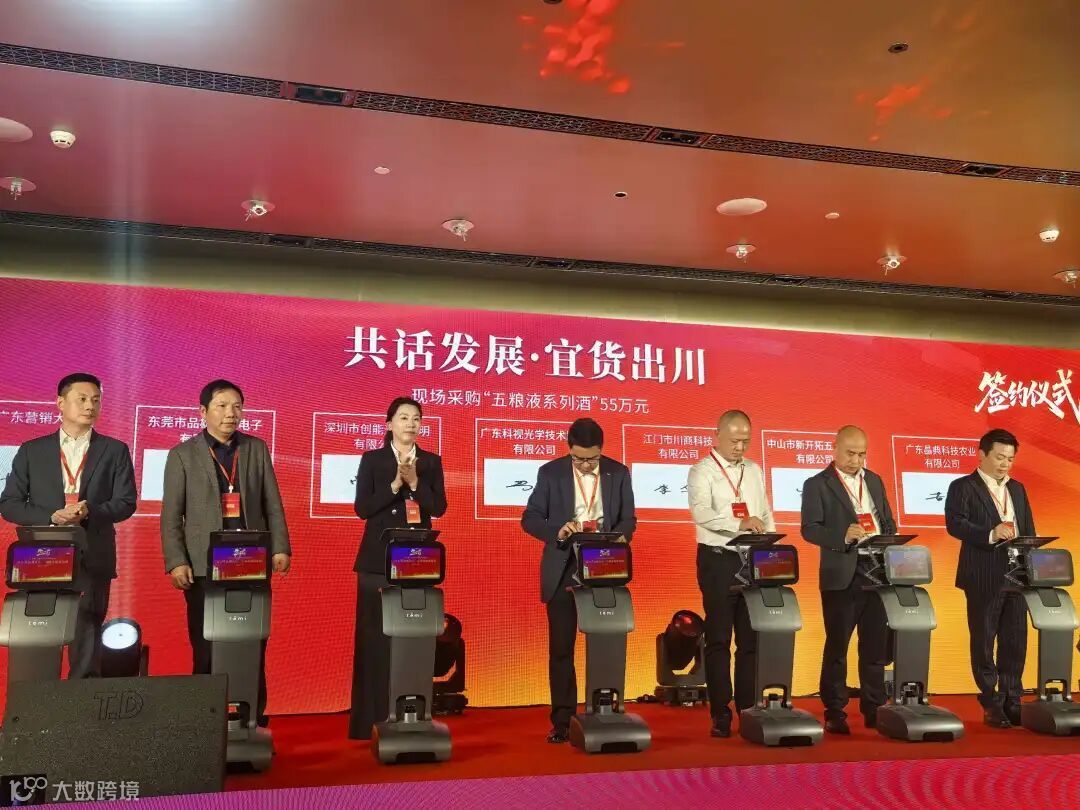 “五粮液系列酒”现场采购(广东晶典科技农业有限公司、中山市新开拓五金制品有限公司、江门市川商科技有限公司、广东科视光学技术股份有限公司、深圳市创能光电照片有限公司、东莞市品雄五金电子有限公司&五粮液广东营销大区签订现场采购五粮液55万元)