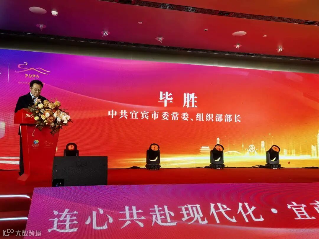 宜宾市委常委、组织部部长毕胜登台致辞。他代表宜宾市委、市政府,向所有在粤企业家长期以来对家乡的关心与支持致以衷心感谢。毕胜部长指出,“宜货出川”是推动家乡优质产品走向全国、走进湾区的重要抓手,更需要广大在粤宜商的鼎力相助。他发出深情邀约:“欢迎大家常回家看看,把好的项目、好的技术、宝贵的经验带回家乡,让更多人了解宜宾、走进宜宾、投资宜宾。宜宾将以最好的政策、最优的服务,为大家回乡发展保驾护航!”