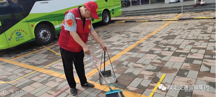 志愿者手持簸箕和笤帚,清扫垃圾,营造了一个干净、舒适的候车环境。