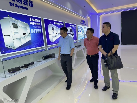 在王华会长的陪同下,余仕和会长与欧纯猛秘书长一行参观了科视光学展厅,详细了解企业在PCB直接成像设备、泛半导体光刻设备及LED曝光机等领域的技术突破与市场应用。作为两家商会的关键人物,王华会长不仅带领科视光学成长为国家级专精特新“小巨人”,也积极借助东莞市四川宜宾商会的平台推动在粤宜宾籍企业家的协同发展。
