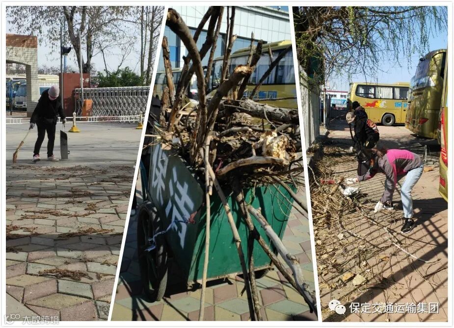 物业管理中心党总支书记李国庆联系保洁科对大院的枯枝败叶进行全面清理,保洁科的老党员曹俊亭带领科里共计12人第一时间赶来单位,从客运中心站的东门到西门,从停车场大院到每一个角落,清理过程中,大家不怕苦不怕累,奋战了将近3个小时,共清运出10车垃圾,整个发车场大院整洁如新,消除了安全隐患。