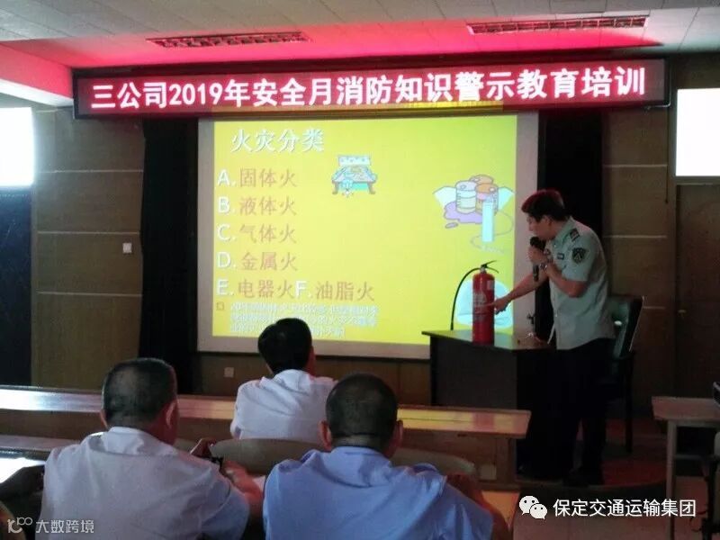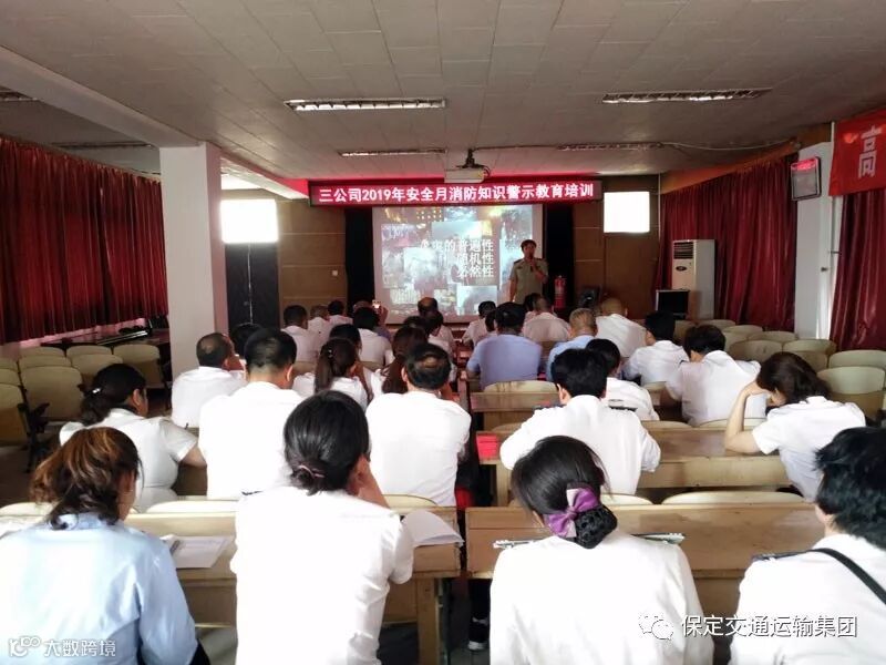 保定交通运输集团为进一步贯彻落实“防风险保平安迎大庆”安全要求, 5月31日下午3:30,三公司特邀保定市社安消防宣传中心教官王峥为公司职工进行消防安全知识警示教育,公司干部职工共计60余人参加培训。