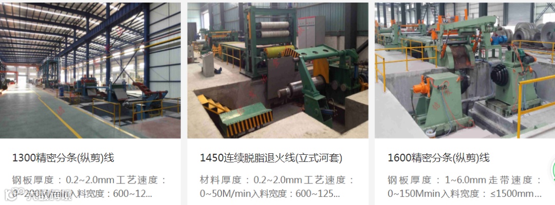 产品:有色金属 CNC 数控整平横切线、拉弯矫直线、精密厚(薄)分条线、脱脂清洗线、彩涂线、镀锌线、电解线、光亮(有氧黑皮)连续钝化线、重卷线、剥壳(破麟)线、酸洗线等等。