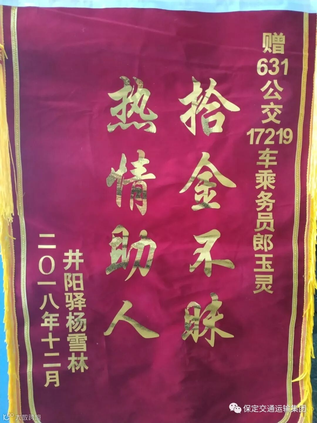 当天下午三点左右失主杨雪林来到乘务队领取失物,核实无误后,乘务队管理人员将手机归还给失主。经过了解失主名叫杨雪林,在乘坐631班车时睡着了,衣兜又比较浅,回到家后才发现手机不见了,这才拨通了自己的电话。失主对乘务员郎玉灵的细心服务、拾金不昧的精神连连称赞,专门定制一面锦旗以示感谢,希望将这种细心服务,拾金不昧的精神发扬光大。