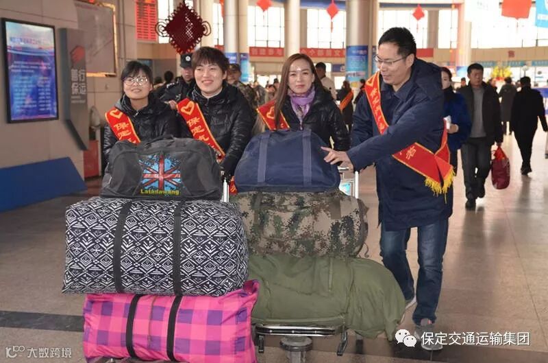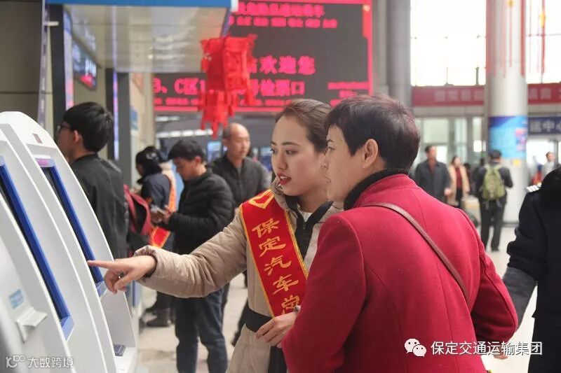 在保定客运中心站,保运青年志愿者们,头戴小红帽、身披绶带,有序分布在各个岗位为旅客服务:安检机旁协助安检员开包检验进站物品,售票大厅内引导旅客有序购票,候车厅内回答旅客问询、帮助旅客搬运行李。