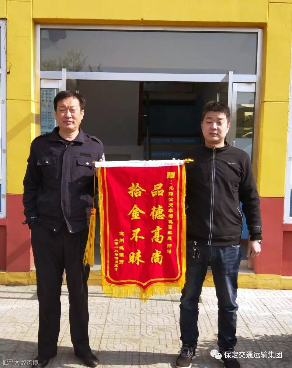 4月7日上午,乘客姚淑贤先生专程来到定州公交车队,将一面“品德高尚 拾金不昧”的锦旗送到公交车队,感谢9路15595车晏红民师傅拾金不昧、乐于助人的高尚品德。